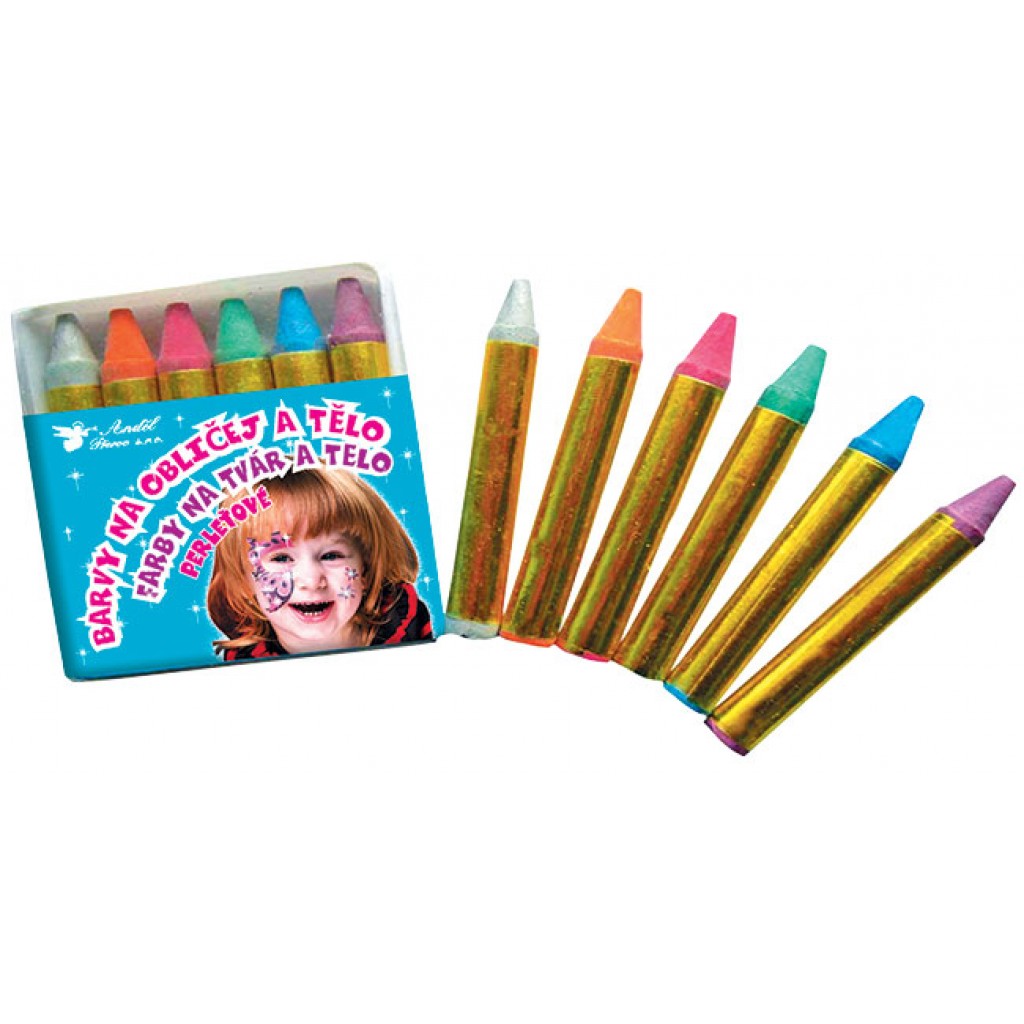 Sada nezávadných barviček na obličej v provedení voskovek. Barvy jsou dobře smývatelné vodou a mýdlem. 6 barev Gramáž: 2,5 g