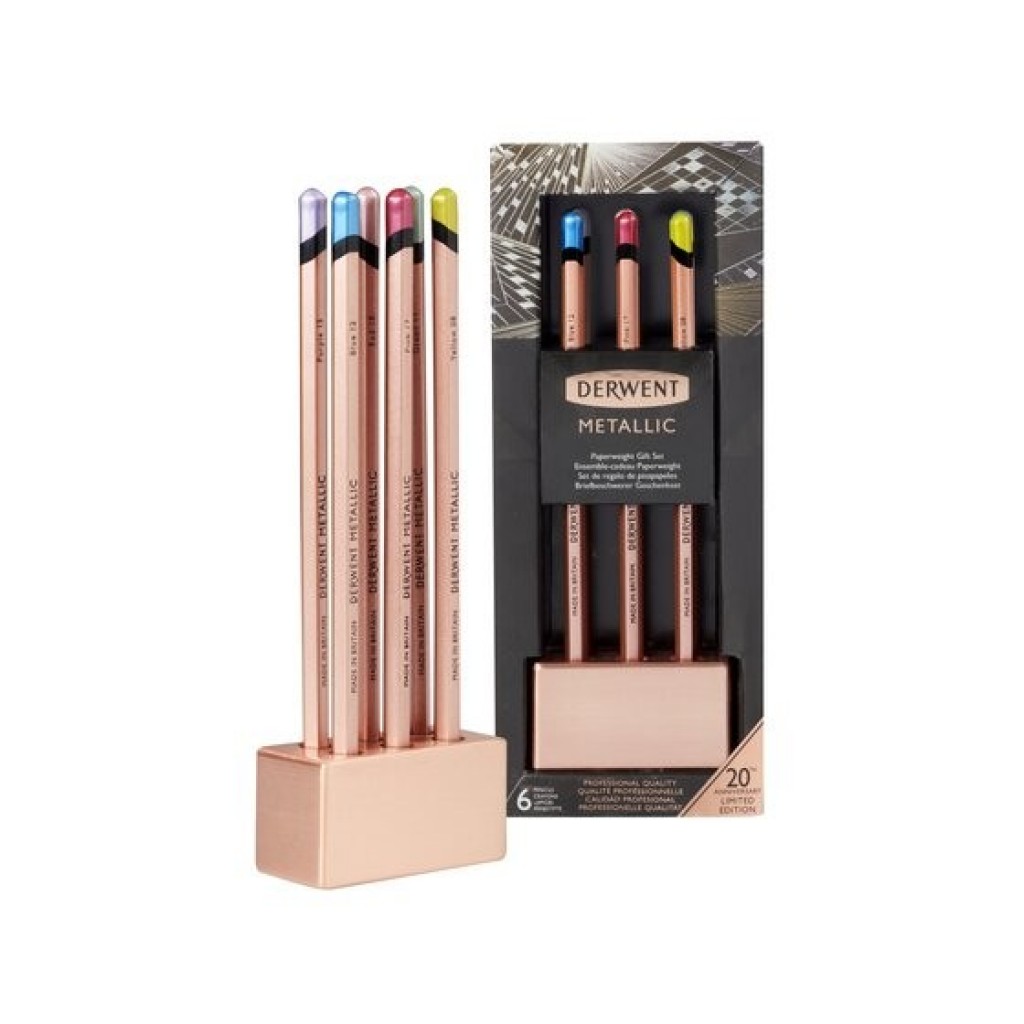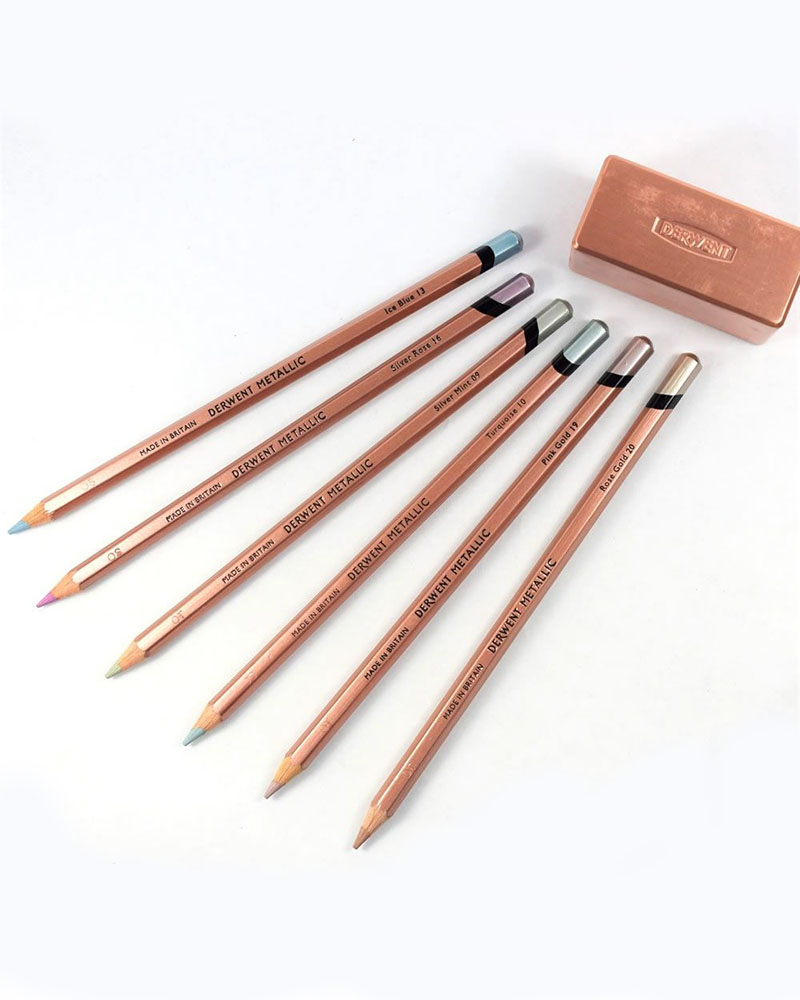 Ve stojánku (těžítku) najdete 6 kusů metalických pastelek:
