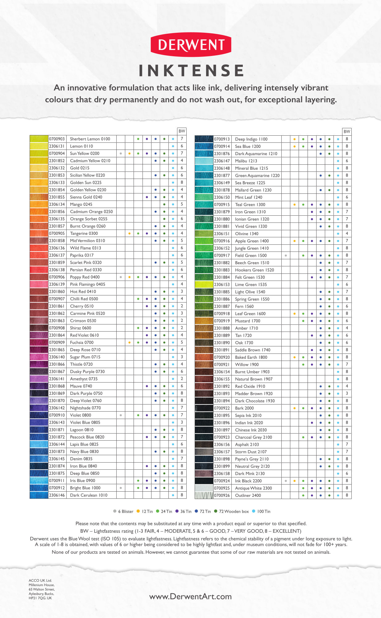 Tužky a pastelky firmy Derwent se vyrábí ve Velké Británii v hrabství Cumbria. Tradice sadá až do roku 1832.Předností je kombinování klasických postupů s vyspělými technologiemi. Kvalita všech vyráběných produktů je plně v souladu s mezinárodně uznávanou normou ISO 9001.