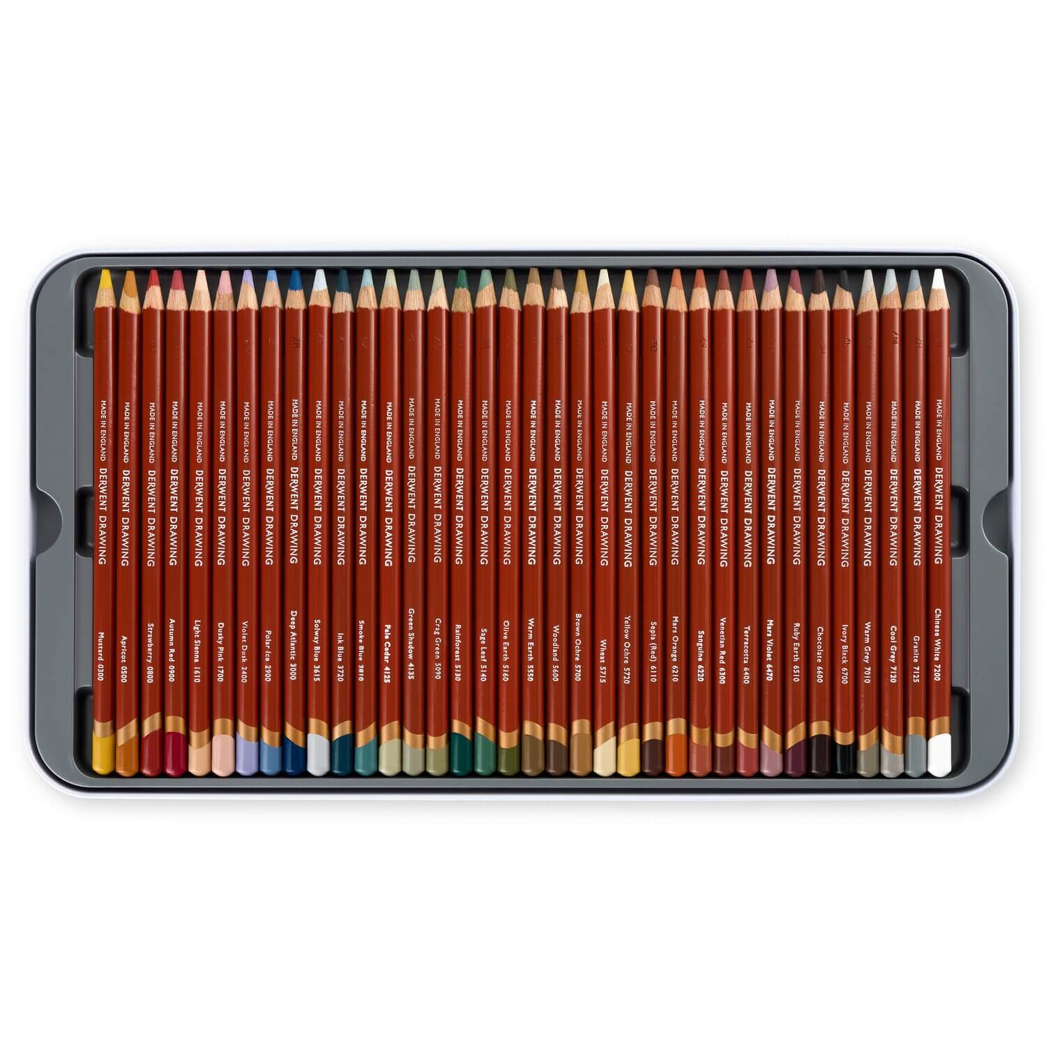 Sada Derwent Drawing 36 pencils tin obsahuje 36 profesionálních barevných tužek inspirovaných přírodou. Jsou vysoce světlostálé pro dlouhotrvající barvu.