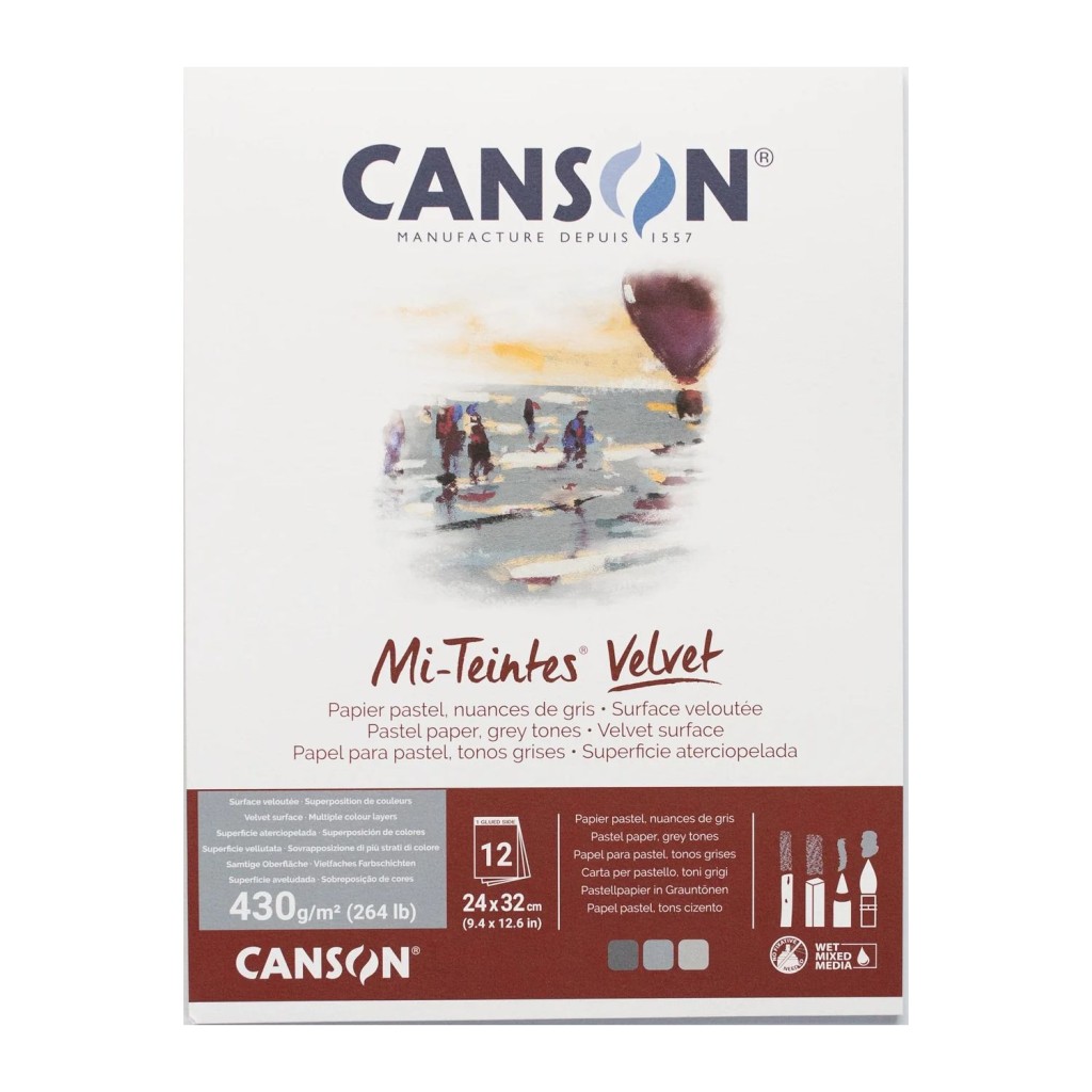 Skicák na pastel Canson VELVET 24 x 31 cm, 12 listů, 430 g, šedé tóny /grey tones